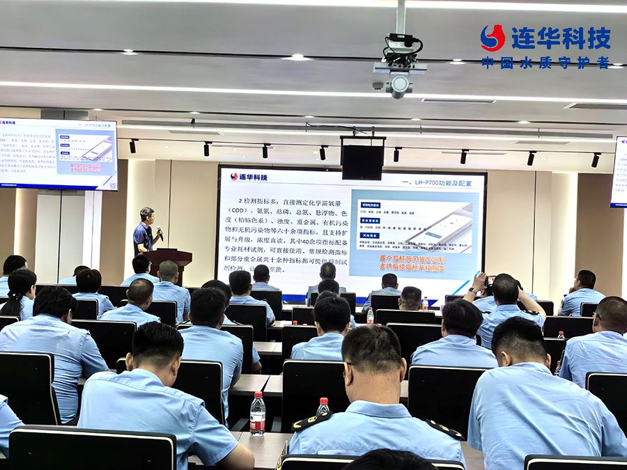 培訓過程中,連華科技作為業內知名的水質檢測儀器及耗材生產廠家,對清瀾系列便攜式水質測定儀LH-P700進行了詳細的介紹和培訓。上午的理論培訓環節,連華科技技術人員對水質測定儀的原理、功能、常規污染指標實驗操作方法及注意事項進行了全面系統的講解,讓參訓人員對LH-P700這款水質測定儀有了更加深入的了解。